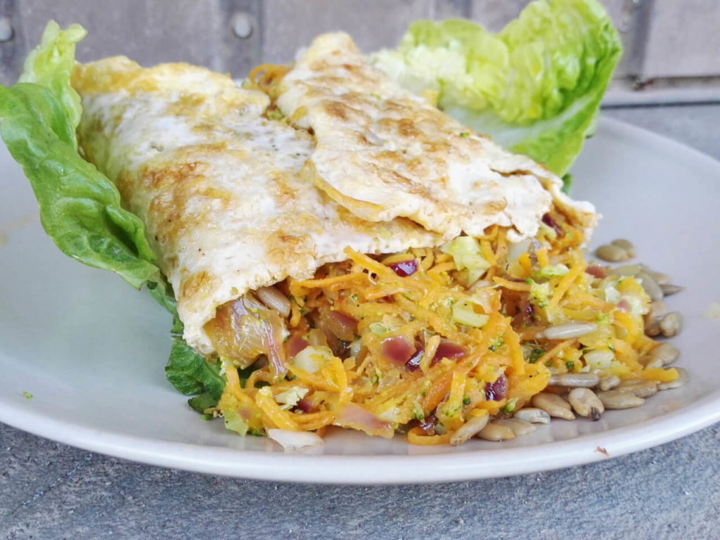 Calzone-omelet met zoete aardappelrasp