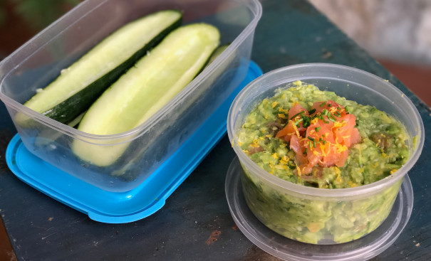 Komkommerbootjes met avocadospread & zalm