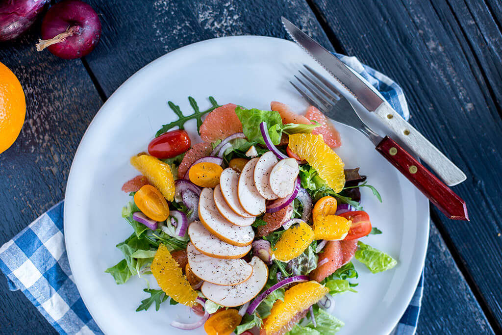 Citrussalade met gerookte kip