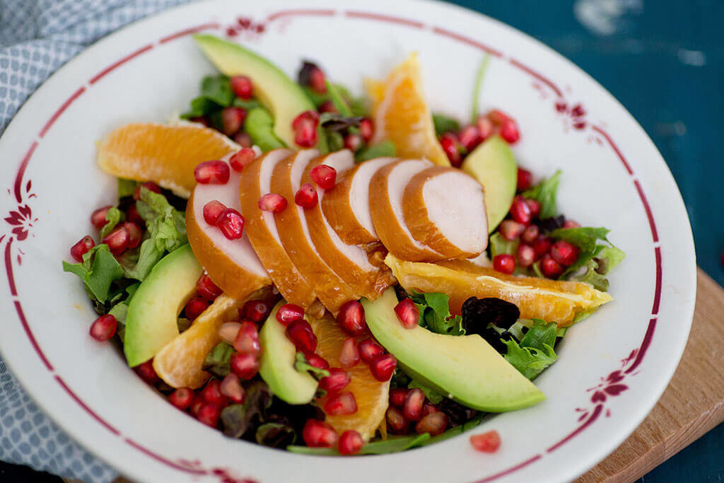 Salade met kip en granaatappel